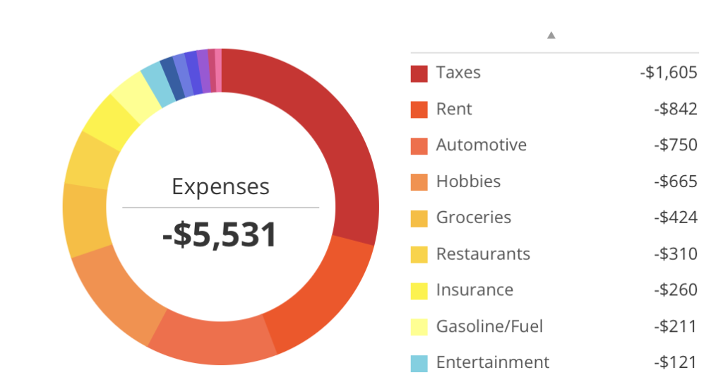 My expenses totaled $5,531. A big expense month for me, as you can see, I paid some quarterly taxes.